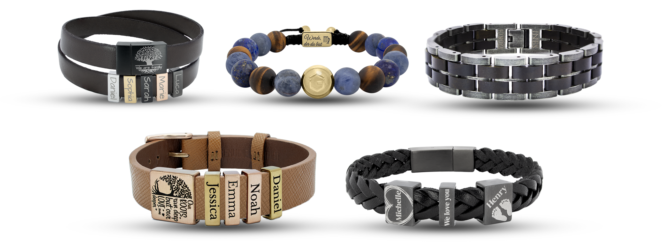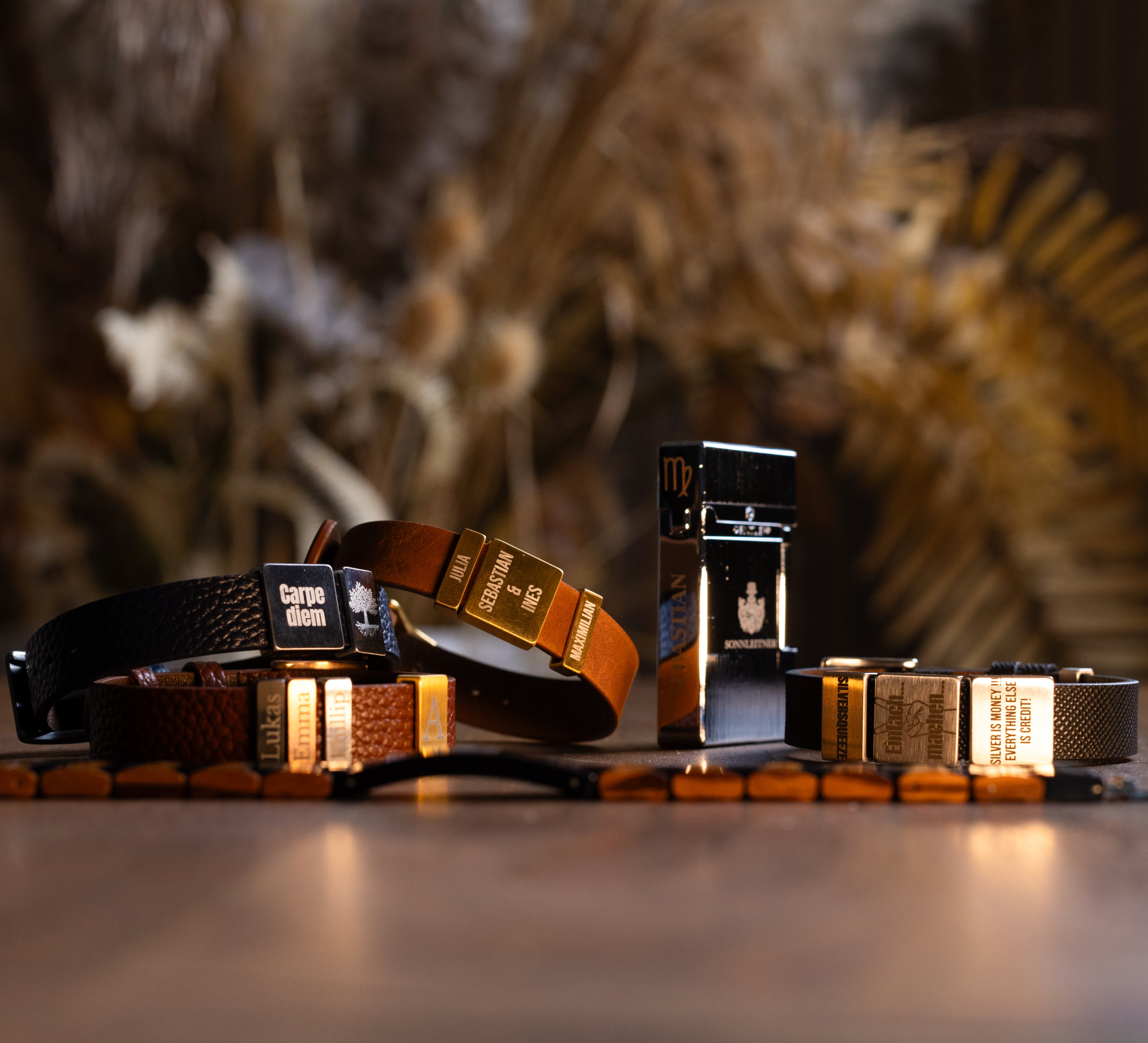 Ob handgefertigter Schmuck aus hochwertigen Materialien oder eine edle Uhr aus einer schweizer Manufaktur, personalisiert mit Deinem Namen oder Daten.